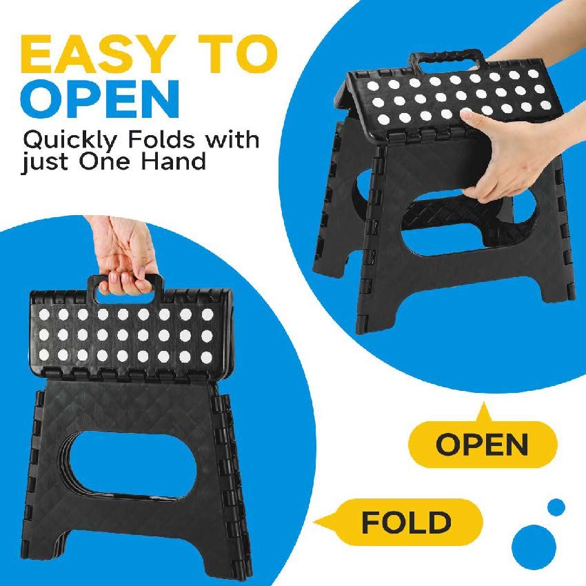 【Quick Opening and Closing 】- The ergonomic carrying handle allows for easy one-handed folding and carrying. Simply lift the handle to quickly fold the plastic step stool for space-saving storage. Whether you need a quick boost to reach a high shelf or a portable seat while gardening, this stool is designed for convenience. 【Non-slip and Safe】- This step stool foldable features an anti-skid top and rubber feet to ensure maximum grip and prevent slippage. The rounded corners enhance safety, and the unique grip-dot textured surface provides secure footing for all users, making it especially suitable for children and the elderly.…