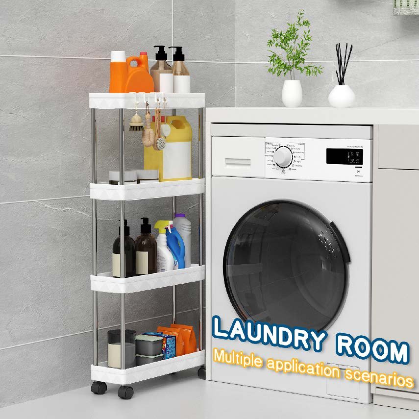 With a narrow 5.12-inch width, this rolling cart is the perfect solution for utilizing tight spaces. Whether in the kitchen, bathroom, laundry room organization, or office, it seamlessly blends functionality and style to keep your essentials organized and within reach.